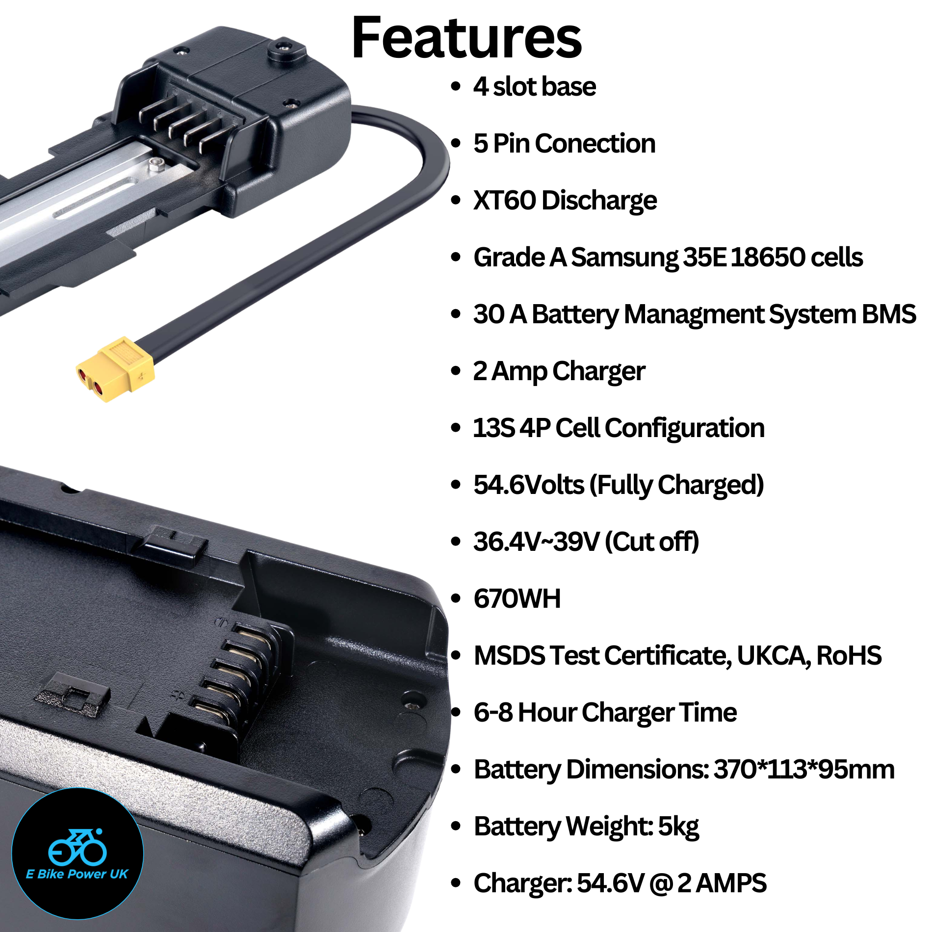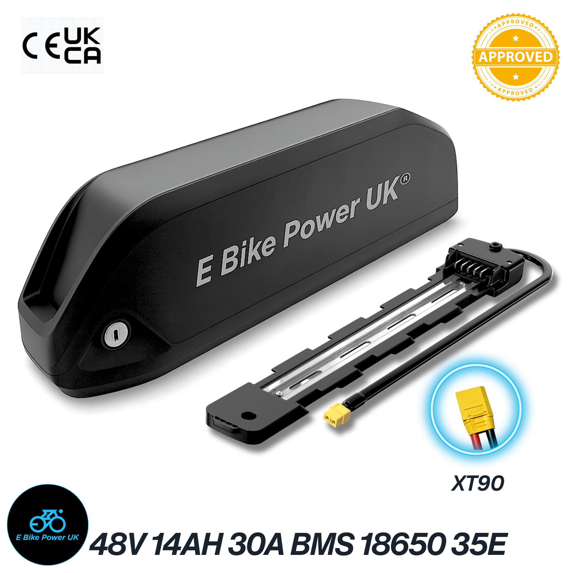 - 🔹 48V 14Ah Poly Downtube Battery + 2A UK charger, rubber pads, 2 keys, XT60